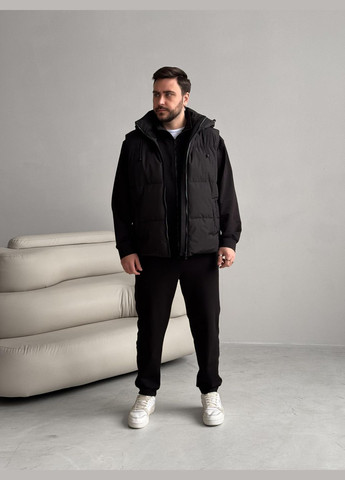 Комплект жилетка Easy + костюм Pull без капюшона черный/серый Жилетка ▫️Материал: высококачественная водоотталкивающая матовая плащевка; ▫️Утеплитель – пух Корея (куртка легкая, не сковывающая движений); ▫️Карманы 3 штуки (2 основные спереди на молниях и 1 внутри на липучке; ▫️Съемный капюшон (отстегивается молнией), объем капюшона можно регулировать шнуром-резинкой с помощью фиксаторов) ; ▫️Качественная фурнитура; ▫️Сезон весна/осень; ▫️Размерный ряд: S, M, L, XL; Костюм ▫️Материал: Турецкая двунитка не кошлатящаяся (Плотность ткани 240 г/м2); ▫️Состав ткани: 85% хлопок, 10% полиэстер, 5% эластан; ▫️Карманы 6шт (2 основных на кофте, и 4шт на штанах) ▫️Пояс на резинке и с качественной хлопковой завязкой; ▫️Капюшон отсутствует; ▫️Сезон весна/осень; ▫️Размерный ряд: S, M, L, XL;