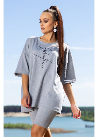 Новая летняя коллекция Free style радует стильной молодежной моделью спортивного костюма с велосипедками в сером цвете. Комплект смотрится необычно за счет удлиненной свободной футболки оверсайз с эксклюзивной вышивкой в зоне декольте и укороченных леггинсов с завышенной талией. Модель пошита из приятного на ощупь высококачественного материала с отменной воздухопроницаемостью летней двунитки. При желании можно подчеркнуть линию талии с помощью съемного текстильного пояса, идущего в комплекте, который дополнен необычной черной пряжкой. Длина изделия: S=72 см, M=72 см, L=72 см, XL=72 см