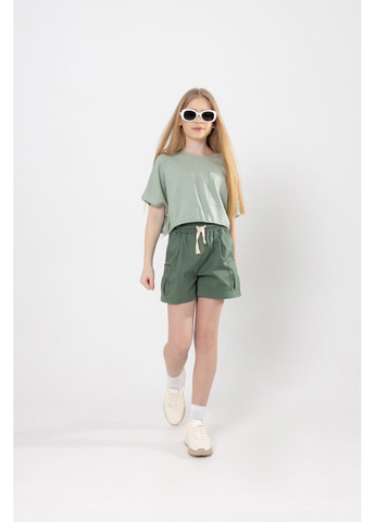 Летний трикотажный комплект для девочки от ТМ «Blueland». Прекрасный лёгкий однотонный комплект-двойка из мягкого, шелковистого турецкого трикотажа, невероятно приятного на ощупь: футболка и шортики. Свободная укороченная футболочка в стиле «оверсайз», прямого силуэта, с короткими рукавами. Горловина не глубокая, вырез горловины отделан эластичной резинкой из основного трикотажа. Удобные свободные расклёшенные шортики А – формы с эластичным трикотажным поясом на широкой резинке (4 см), обеспечат оптимальную посадку по фигуре. Отличный летний комплект, составляющие которого гармонично смотрятся вместе, но могут быть удачно скомбинированы с любым элементом гардероба вашего ребенка. Стирать и утюжить рекомендуется с изнаночной стороны.