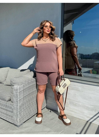 Женский костюм комплект 3-ка тройка мокко – стильный, комфортный и универсальный вариант для любой ситуации. Этот костюм состоит из футболки, брюк и кардигана, что делает его идеальным для повседневной носки в летне-весенний период. Ткань мустанг приятна на ощупь, хорошо тянется, что обеспечивает максимальный комфорт.