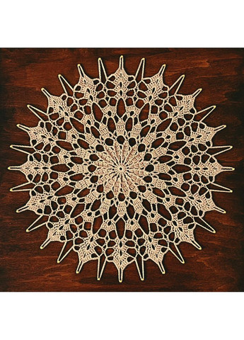 Вязаная картина-мандала "Солнечная гармония" – теплый акцент для вашего интерьера. Ажурное полотно выполнено крючком из хлопковой пряжи песочного оттенка, закрепленное на деревянном артборде цвета орех. Контраст природных материалов создает чувство уюта и гармонии. Узор мандалы напоминает лучистое солнце, символизирующее тепло, жизненную силу и обновление. Такая композиция станет хорошим подарком для тех, кто ценит ручную работу, эко-декор и натуральный цвет. 📏 Размер готового изделия: 30×30 см 📌 Материалы: деревянная основа (цвет орех), хлопчатобумажная пряжа 100%, декоративные металлические гвозди Советы по уходу. Вязаную часть мандалы легко можно снять и постирать руками или в стиральной машине в режиме деликатной/ручной стирки. После чего влажную салфетку натянуть обратно на артборд и дать высохнуть. В нашей мастерской Вы можете заказать мандалы других цветов и размеров.