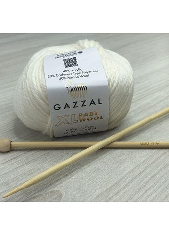 Состав (материал) 40% Мериносовая шерсть, 20% Кашемир ПА, 40% Акрил Вес мотка 50 g Метраж на этикетке 100 m Соответствующие спицы: № – Ответный крючок: № – Расчет петель 10×10 cm …. 32 ряда 30 петель Количество мотков в упаковке 10 Gazzal Baby Wool XL, Турция. Метраж 100м. Вес 50 г Состав 40% мериноса, 40% полиакрил, 20% кашемир ПА. Очень теплая и безумно мягкая. Учитывая 20% кашемира ПА в составе, пряжа для вязания Газал Беби Вул ХL идеально подходит как для детей, так и для взрослых с нежной кожей. Ее шелковистая структура будет давать только самые приятные ощущения во время носки. Изделия, после длительного ношения, не скатываются. Эта пряжа отлично подходит для вязания любого типа изделий, начиная от шапочек и шарфиков, и заканчивая свитерами и кардиганами.