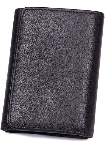 Размер (Ширина, Высота, см.): 8x11; Материал: натуральная кожа; Цвет: черный. Удобный мужской кожаный кошелек Аксессуар прочно прошит по диагонали нитью черного цвета. Внутри кошелек имеет большой карман для купюр, которые помещаются в развернутом виде. Внутри кошелька имеется отделения для карточек и прозрачный карман для документов. Сам аксессуар складывается в два раза и закрывается на кнопку. На задней стороне аксессуара расположена монетница, которая предоставляет владельцу кошелька быстрый доступ к мелочи, не открывая при этом сам кошелек. Кошелек легко помещается в карман любых штанов и не занимает много места в сумке или средних размеров борсетки. Кошелек упакован в текстильный пылезащитный чехол.