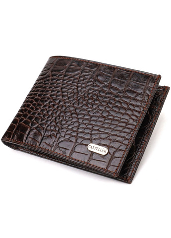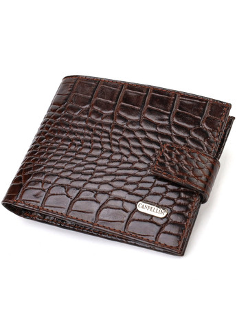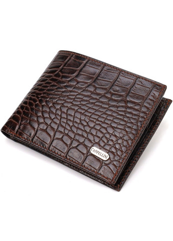 Материал: натуральная кожа; Размеры (ШхВ, см): 12,2х9,5х2 см; Цвет: коричневый; Страна производитель: Турция. Описание: - основное отделение для купюр с карманом-перегородкой на молнии; - 3 ячейки для карточек; - 2 кармана под сеточкой; - 2 прилегающих кармана; - монетница, что закрывается клапаном на кнопку; - закрывается хлястиком на кнопку; - кошелек упакован в фирменную коробочку. Надежное мужское портмоне среднего размера из натуральной кожи с тиснением под крокодила. Аксессуар имеет основное отделение для купюр с карманом-перегородкой на молнии, три ячейки для карточек, два кармана под сеточкой, два прилегающих кармана и монетницу. Кошелек складывается пополам, закрывается хлястиком на кнопку. На лицевой стороне в правом нижнем углу, расположен металлический логотип компании производителя. Многофункциональный мужской бумажник из очень прочной кожи отличный выбор подарка для солидного му