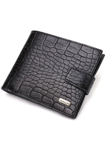 Материал: натуральная кожа; Размеры (ШхВ, см): 12,2х9,5х2 см; Цвет: черный; Страна производитель: Турция. Описание: - основное отделение для купюр с перегородкой; - 4 ячейки для карточек; - 2 кармана под сеточкой; - 3 прилегающих кармана; - монетница, что закрывается клапаном на кнопку; - закрывается хлястиком на кнопку; - кошелек упакован в фирменную коробочку; Фактурный мужской кошелек среднего размера из натуральной кожи с тиснениемпод крокодила. Аксессуар имеет основное отделение для купюр с перегородкой, четыре ячейки для карточек, два кармана под сеточкой, три прилегающих кармана и монетницу. Кошелек складывается пополам, закрывается хлястиком на кнопку. На лицевой стороне в правом нижнем углу, расположен металлический логотип компании производителя. Покупая кожаный кошелек в нашем магазине, Вы получаете модный, стильный аксессуар, который прослужит не один год.