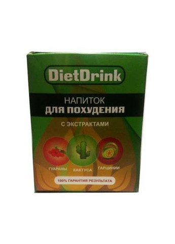 Одним из доказанных на практике преимуществ этого средства, отличающего его от большинства других, — после окончания курса приема напитка лишние килограммы не возвращаются длительное время, но это не означает, что можно и дальше запивать фастфуды колой в больших количествах. Помните, что правильное питание – залог успеха при любой диете. L-карнатин сжигают жировые отложения, даже когда вы сидите в офисе или за рулем своего автомобиля. Основные компоненты: Гуарана — ягоды, содержащие большое количество минералов и витаминов, необходимых для организма, и уменьшают желание есть. Кактус – это средство, отлично выводящее холестерин из тела, очиститель организма от заточки и токсинов. Гарциния ― расщепляет попадающие в организм жиры и блокирует появление новых жировых отложений на печеночном уровне, не позволяя продуцировать новые жировые клетки. Как принимать Diet Drink? Напиток для похудения DietDrink достаточно прост в применении. Один пакетик средства нужно растворить в стакане не газированной, очищенной воды и выпить за полчаса до еды. Достаточно употреблять два таких стакана в течение дня и результат будет заметен уже через неделю. Половина ложки ДиетДринка и стакан воды – это все, что нужно для того, чтобы потерять до 10 килограммов в месяц. А если Вы устраните из рациона фастфуды, жареную, копченую и лишнюю соленую пищу – результат может превзойти все Ваши ожидания. Характеристики Страна производитель Бразилия Вес 10 саше по 5 граммов