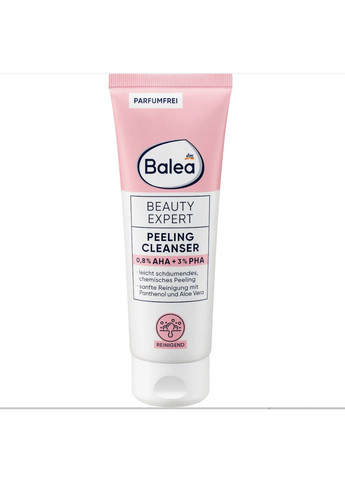 0,8% AHA + 3% PHA Слегка пенистый химический пилинг Нежная очистка с пантенолом и алоэ вера Без запаха Рецепт без микропластика и водорастворимых, чисто синтетических полимеров Balea Beauty Expert Peeling Cleanser предлагает эффективный уход с помощью концентрированных ингредиентов, оптимально адаптированных. AHA и PHA – Альфа-гидрокси и полигидроксикислоты – это кислоты природного происхождения, которые проникают в верхний слой кожи и мягко удаляют мертвые клетки кожи. Пилинг-моющее средство с 0,8% AHA и 3% PHA особенно нежно отшелушивает кожу. Химический пилинг с пантенолом и алоэ вера подходит для повседневного использования. Он поддерживает естественный процесс обновления кожи и гарантирует, что кожа становится гладкой и ровной. Значение рН: 4,0 – 5,0 Рецепт без микропластика и водорастворимых, чисто синтетических полимеров. Инструкция по применению Нанесите на очищенную кожу утром или вечером, слегка вспените и смойте теплой водой. Избегайте области вокруг глаз. Для повседневного использования рекомендуется наносить солнцезащитный фактор в течение дня. pH: 4,0 – 5,0 AQUA, SODIUM CARBOXYMETHYL STARCH, SODIUM LACTATE, BUTYLENE GLYCOL, GLUCONOLACTONE, DECYL GLUCOSIDE, LAURYL GLUCOSIDE, MALTOOLIGOSYL GLUCOSIDE, HYDROGENATE BARBADENSIS LEAF JUICE, PANTHENOL, INULIN, COCAMIDOPROPYL BETAINE, LACTIC ACID, SODIUM CITRATE, SODIUM CHLORIDE, ALCOHOL, XANTHAN GUM, CITRIC ACID, SODIUM BENZOATE.