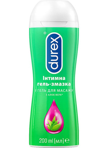 Наслаждайтесь счастливыми моментами с любимым человеком, пока интимный гель-смазка с массажным аппликатором от бренда Durex позаботится о вашем сексуальном здоровье! Приятная консистенция и тонкий аромат иланг-иланга пробудят у вас страстные чувства, которые будет сложно игнорировать. Особенности Play Massage 2 in 1 Aloe Vera от бренда Durex: – имеет легкую и нежирную текстуру; - увлажняет и питает кожу; - устраняет дискомфорт; - легко распределяется по коже; - не вызывает раздражения или аллергической реакции; - усиливает сексуальные ощущения; - имеет уникальный массажный аппликатор; - может использоваться с презервативами; - подходит для увлажнения интимных зон; - предупреждает дискомфорт во время трения; - после высыхания оставляет легкую пленку; - не сбивается и не липнет; - во время массажа легко скользит; - созданный на водной основе; - можно использовать как массажное масло и смазку.