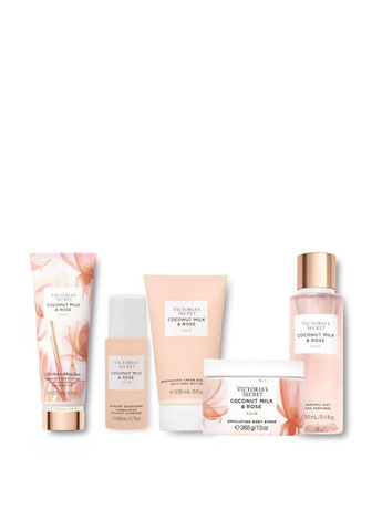 Набор для тела Coconut Milk & Rose от Victoria’s Secret. Начните свой ритуал по уходу за телом с этого эксклюзивного набора из коллекции "Естественная красота". Почувствуйте атмосферу блаженного спокойствия благодаря ароматам кокосового молока и розы. Коллекция, создана для поддержания кожи мягкой и здоровой. Идеальное сочетание аромата и пользы. Роскошные и действенные формулы средств по уходу за телом. Навеянная флорой ежедневная трансформация. Коллекция Естественная красота Coconut Milk & Rose: 1. Парфюмированный мист. Пробудите свои чувства освежающим парфюмированным мистом. Объем: 250 мл. 2. Увлажняющий лосьон для тела. Шелковистая формула этого средства с маслом ши и кокосовым маслом увлажняет кожу, дарит ей мягкость и наполняет легким ароматом. Просто нанесите средство на кожу для нежного аромата и увлажнения в течение 24 часов. Объем: 236 мл. 3. Отшелушивающий скраб для тела. Подарите своей коже гладкость и мягкость с помощью этого насыщенного скраба. Объем: 368 г. 4. Увлажняющий крем-гель для душа. Шелковистая формула нашего геля для душа с маслом ши одновременно очищает и увлажняет кожу. Объем: 236 мл. 5. Натуральный дезодорант. Новый дезодорант с экстрактом семян помело обеспечит учтивую защиту в течение 24 часов. Формула без алюминия, этот продукт позволяет вам использовать природный процесс транспирации. Объем: 50 мл. Аромат: цветочно-фруктовый. Ноты: кокосовое молоко и роза. Отличное качество.