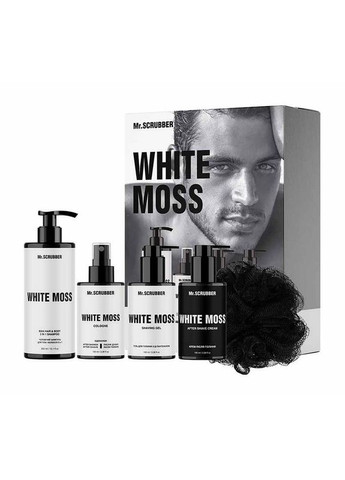 Парфюмерный набор для уходовой мужской рутины White Moss имеет свежий запах мускуса, амбры и дерева. В нем комплекс средств для тела и волос, которые помогут выглядеть уверенно и чувствовать свежесть в течение дня. В наборе: • Шампунь для тела и волос 2 в 1 White Moss, 300 ml • Одеколон после душа, после бритья White Moss, 100 ml • Гель для бритья с д-пантенолом White Moss, 100 ml • Крем после бритья White Moss, 100 ml • Мочалка мужская