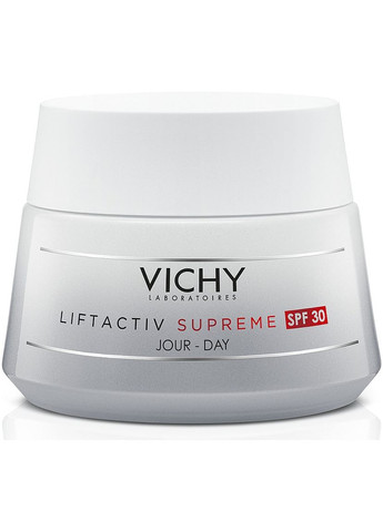 Кожа начала терять тонус? Выключите обезвоживание. Бренд Vichy выпустил инновационное средство длительного действия, благодаря которому вы сможете наполнять кожу влагой и корректировать морщины каждый день. Особенность крема состоит в содержании SPF30, а также термальной воды, гиалуроновой кислоты и ниацинамида. Клинически доказанная эффективность подтверждает, что регулярное применение средства стирает линии обезвоженности, препятствует появлению морщин и разглаживает кожу лица. Особенности Liftactiv Supreme Day Cream SPF30 For All Skin Types от Vichy: - активная антивозрастная формула; - содержит УФ-фильтры широкого спектра действия; - уменьшает имеющиеся морщины; - возвращает коже тонус и упругость; ниацинамид обладает противовоспалительными свойствами; - протестирован под дерматологическим контролем.