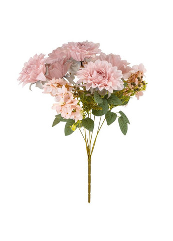 Высота – 45 см, ширина букета – 27 см. Диаметр бутона – 12 см. В букете 6 георгин и 3 соцветия гортензий. Цветы выполнены из ткани, стебли – из пластика. Искусственный букет из георгин и гортензий создает впечатление природного великолепия и гармоничной композиции. Большие объемные бутоны георгин сочетаются с нежными соцветиями гортензий, добавляя букет текстурной глубины. Декоративная зелень и мелкие акценты придают завершенный вид, делая его отличным выбором для декора интерьера или праздничных событий.