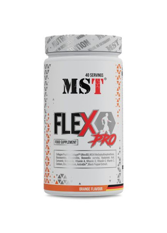 Для суставов и связок хондропротектор MST Flex Pro 300 г Манго Маракуйя Для суставов и связок хондропротектор MST Flex Pro 300 г Flex Pro от MST - это усиленная формула для комплексной поддержки суставов, связок и хрящевой ткани. Разработан для спортсменов и активных людей, испытывающих высокие нагрузки на опорно-двигательный аппарат. Полезные свойства: Премиальный состав: Глюкозамин сульфат – строительный материал для хрящей Хондроитин сульфат – защита и увлажнение суставов MSM (метилсульфонилметан) – противовоспалительное действие Гиалуроновая кислота – улучшает подвижность суставов Коллаген (тип II) – укрепляет соединительную ткань Экстракт босвеллии – натуральный противовоспалительный эффект Витамин C – усиливает синтез коллагена Цинк – участвует в регенерации тканей Комплексное действие – защита + восстановление + профилактика Подходит для длительного применения Состав в одной порции 15 г (1 мерная ложка): Энергетическая ценность - 40 ккал Жиры <0,5 г - из них насыщенные жиры <0,1 г Углеводы - 1,9 г - из них сахара <0,5 г Клетчатка - 0,5 г Протеин - 4,6 г Соль - 0,17 г Витамины и минералы Витамин A - 400 мкг RE Витамин D - 5 мкг Витамин E - 33 мг ɑ-ТЕ Витамин C - 500 мг Кальций- 800 мг Цинк - 13 мг Селен - 100 мкг Активные компоненты Коллагеновые пептиды Solugel® Ultra B/D - 5 г MSM (метилсульфонилметан) - 1000 мг Глюкозамина сульфат дикалия хлорид - 995 мг - из них глюкозамина сульфата - 750 мг - из них глюкозамина - 589 мг Хондроитин сульфат - 600 мг Экстракт босвеллии (Boswellia serrata) - 118 мг - из них босвелиевой кислоты - 100 мг Гиалуронат натрия - 53 мг - из них гиалуроновой кислоты - 50 мг Экстракт корня куркумы - 50 мг - из них куркуминоидов - 47,5 мг - из них куркумина - 35 мг Бромелаин - 1200 GDU/g Экстракт женьшеня и астрагала AstraGin™ - 25 мг - из них сапонинов - 375 мкг Экстракт чёрного перца (Bioperine®) - 2,5 мг - из них пиперина - 2,4 мг Аминокислотный профиль L-лейцин - 0,13 г L-лизин - 0,15 г L-треонин - 0,08 г L-валин - 0,1 г L-изолейцин - 0,07 г L-метионин - 0,04 г L-триптофан - 0,02 г L-гистидин - 0,05 г L-пролин - 0,6 г L-тирозин - 0,2 г L-аргинин - 0,33 г Глицин - 1,1 г L-цистеин - 0 г L-глутаминовая кислота - 0,47 г L-аспарагиновая кислота - 0,24 г L-серин - 0,15 г L-аланин - 0,41 г L-фенилаланин - 0,09 г Гидроксипролин - 0,57 г Ингредиенты: Гидролизованный коллаген (бычий) Solugel® Ultra BD, тетрагидрат трикальция цитрата, метилсульфонилметан, D-глюкозамина сульфат дикалия хлорид (ракообразные), регулятор кислотности (лимонная кислота), хондроитин сульфат натрия (бычий), инулин, ароматизатор, L-аскорбиновая кислота, антислеживающий агент (диоксид кремния), краситель, экстракт босвеллии, D-альфа-токоферилацетат, подсластители (сукралоза, ацесульфам K), гиалуроновая кислота, экстракт корня куркумы, бисглицинат цинка, экстракт женьшеня и астрагала AstraGin™, бромелаин, экстракт черного перца, ретинил пальмитат, селенат натрия, холекальциферол. Рекомендации по применению Принимайте по одной порции в день после завтрака. Смешайте одну порцию (1 мерная ложка - 15 г) с 300 мл воды.