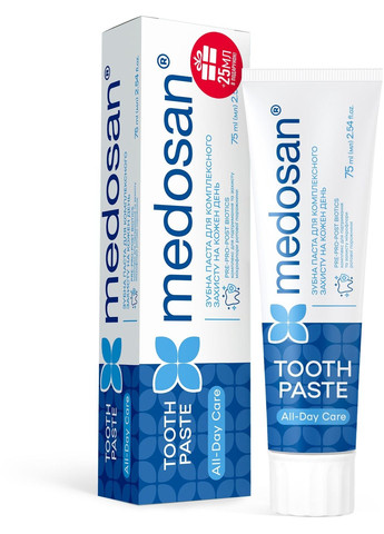 Зубная паста для комплексной защиты All-Day Care помогает укрепить эмаль и поддерживать ее природную структуру каждый день благодаря воздействию гидроксиапатита и лактата кальция. Цинковый лактат поддерживает свежесть дыхания, а комплекс пре-пост биотиков заботится о балансе микрофлоры ротовой полости, способствуя ее здоровью.