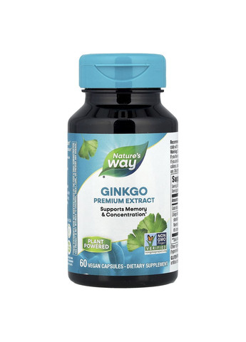 Premium Extract Ginkgo от Nature’s Way — это добавка высокого качества на основе стандартизированного экстракта листьев гинкго билоба, предназначенная для поддержки когнитивных функций, памяти, концентрации и ясности мышления Порция: 2 капсулы Порций в упаковке: 30 В одной порции % от суточной потребности Готу Кола (надземные части) 400 мг ** Экстракт гинкго двулопастного (листья), стандартизированный по содержанию 24% флавоновых гликозидов гинкго (28,8 мг) и 6% терпеновых лактонов (7,2 мг). 120 мг ** ** Суточная потребность не определена.