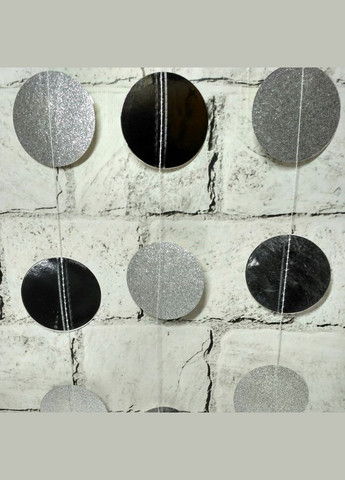 Бумажная гирлянда-нить с кружочками (серебро, глиттер). Декор для украшения фотозоны, праздничного мероприятия, кэнди бара, детской комнаты. Состоит из 20 элементов Длина гирлянды - 2,5 метра Размер элементов - 6,5х6,5 см Расстояние между элементами - 7 см Материал - бумага