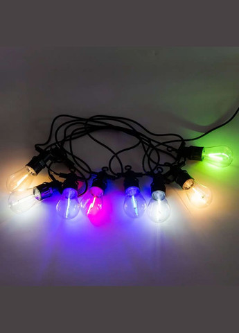 Уличная ретро-гирлянда с 10 LED лампами длиной 5 метров Filament E27, теплый и холодный свет, влагозащита IP44 для улицы, террас, альтанок и кафе Уличная ретро-гирлянда создаёт уютную атмосферу и ностальгическое настроение на вашем участке, в кафе, ресторане или в помещении. Классический дизайн и большие лампы Filament LED обеспечивают мягкий, равномерный свет, подходящий для альтанок, веранд, деревьев, фасада дома, двора и фотозон. Гирлянда изготовлена из качественного ПВХ и пластика, обладает влагозащитой IP44, устойчива к дождю, пыли и перепадам температур. Шнур длиной 50 см с цоколем E27 обеспечивает удобное подключение к сети 220 В. Угол свечения 300°, цвет лампочек: тёплый белый, холодный белый, розовый, синий, зелёный, что позволяет создать атмосферное освещение для любого события. Преимущества: 10 LED ламп Filament с разнообразным цветом свечения Длина 5 метров, подходит для улицы и интерьера Влагозащита IP44 — устойчивость к любым погодным условиям Энергосберегающие и безопасные лампы Идеально для террас, альтанок, фасада, кафе, фотозон и праздников