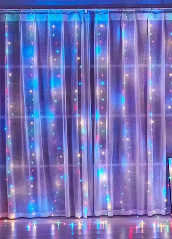 Светодиодная гирлянда-штора 3х2 м, 200 LED-диодов. Гирлянда "Штора-водопад" LED 200 – это яркая светодиодная гирлянда, идеально подходящая для создания праздничной атмосферы в вашем доме. Благодаря большим размерам (3 м х 2 м) и количеству светодиодов (200 LED), она создает эффект настоящего светового водопада, завораживающего своим мерцанием и переливами света. Работает от USB (подключается с помощью адаптера), павербанка, ноутбука и т.д. В комплекте идет пульт, благодаря которому можно дистанционно включать один из 8 режимов мигания, уменьшать/увеличивать яркость, включать/выключать гирлянду, а также активировать таймер ее мигания. Напряжение: 5 В. Цвет: разноцветная (мульти).