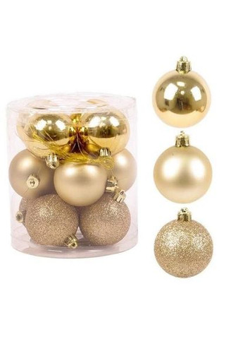 Набор пластиковых елочных шаров, цвет – золотой, 12 шт. диаметром – 5 см: 4 шт. - глянец, 4 шт. - глиттер, 4 шт. – матовый. Елочные шары словно созданы для того, чтобы новогоднее настроение поселилось в вашем доме. Шарики на елку всегда будут классическим решением в праздничном декоре - они хороши не только для елки, но и в составе оригинальных зимних букетов и дизайнерских композиций. Ещё ими можно декорировать хвойную гирлянду или рождественский венок - вариантов применения существует масса.