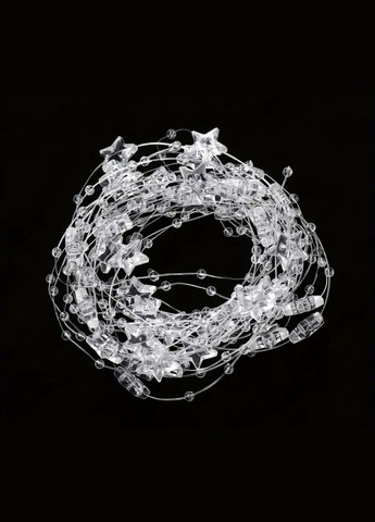 Праздничная лента-гирлянда с акриловыми прозрачными бусинками и звездочками. Подходит для декора интерьера, подарков, елки и ручного изготовления украшений. Длина 4,5м. Не светится.