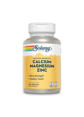 Свойства продукта: Поддерживает здоровье костей, хрящей и суставов Помогает поддерживать плотность костей Способствует регенерации хрящевой ткани Способствует укреплению сердечно-сосудистой системы Способствует повышению концентрации внимания Поддерживает высокий уровень энергии и жизненного тонуса Поддерживает память Способствует поддержанию здоровья мочеполовой системы Поддерживает нормальную работу мышц Показания к применению Принимайте 4 капсулы ежедневно с едой или стаканом воды. Что это? Кальций и магний– это важные минералы, которые влияют на множество жизненно важных аспектов человеческого организма. Solaray добавили в формулу цинк для усиления положительных качеств. Как это работает? Кальций обеспечивает организму целый набор разнообразных пищевых элементов, которые укрепят ваши кости, а также восстановит правильную структуру хрящей и суставов. Этот минерал широко применяется в качестве профилактики и лечения остеопороза и остеохондроза. Вместе с магнием, кальций способствует выработке энергии в клетках, восстановлении и поддержке функций нервной системы. Также магний способствует свертыванию крови и ускорению ее циркуляции по телу. Это значит, что этот минерал имеет важное значение для стабилизации сердечно-сосудистой системы и головного мозга. элемент Вес Единица Процент Порция 4 Капсулы Порций в упаковке 25 Всего углеводов <1 г <1 Диетическое волокно <1 г 2 Кальций (как карбонат кальция, гидроксид кальция, цитрат кальция, хелат аминокислоты кальция) 1000 мг 77 Магний (в виде оксида магния, цитрата магния, хелата аминокислоты магния) 500 мг 119 Цинк (как хелат аминокислоты цинка) 25 мг 227 L-Глутаминовая кислота 100 мг