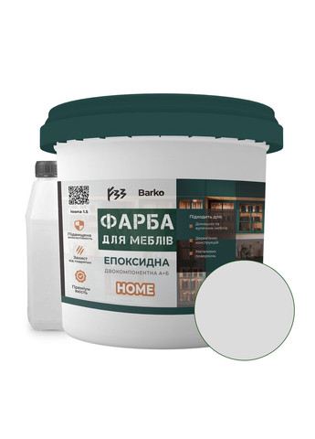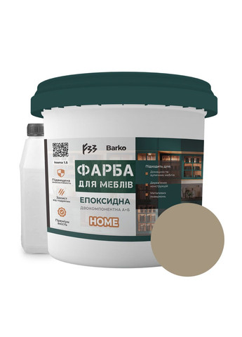 Цвет - Белый, Серый,графит,Черный,Коричневый,Зеленая светлая оливка,Зеленая темная оливка,Бежевая,Черный Вес - 1 кг Глянцевая краска Высыхание - 2 дня Расход - 80-150 г на м2. Эпоксидная краска для мебели Barko Home 1 Зашкурьте поверхность мебели, обезжирьте ее. 2. Тщательно смешайте краску с отвердителем в течение 10 минут. 3. Наносите краску валиком с ворсом до 4 мм, который устойчив к лакам и растворителям при температуре не менее +17°C. Обеспечьте такие же условия для высыхания. 4. Время работы смеси – 3 часа, полное высыхание занимает 3 дня. 5. Второй слой краски можно наносить через 3 дня после высыхания первого слоя.