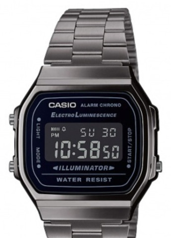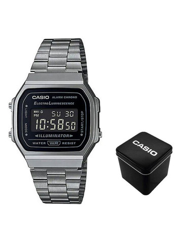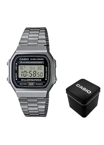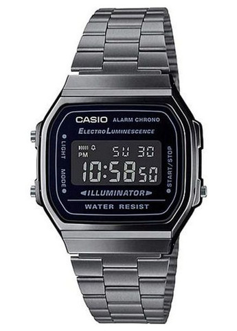 Благодаря своему ретро-дизайну серия Casio A168WA-1YES из Vintage Collection подойдет как мужчинам, так и женщинам. Это проверенная годами популярная модель с цифровым дисплеем и полезными функциями. Casio A168WA-1YES имеют цифровой дисплей, показывающий время, дату, день недели, секундомер, будильник, 12/24-часовой формат и подсветку дисплея Illuminator, преимуществом которого является равномерное освещение всей площади дисплея. Календарь работает полностью автоматически с часами, так что вам не придется беспокоиться о его настройке со временем. Пластиковый корпус часов дополнен простым металлическим браслетом, который популярен не только своим дизайном, но и легкой регулировкой длины, оба с золотым покрытием. Дисплей защищен пластиковым стеклом. Водонепроницаемость данной модели составляет 30 м – подходит для случайного контакта с водой при мытье рук и дождя. Часы порадуют вас продолжительным временем автономной работы, до 7 лет.
