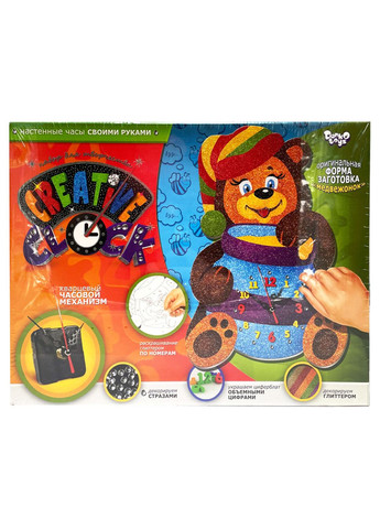 Набор для творчества "Часы своими руками" откроет Вашим детям прекрасный мир звания разных предметов повседневного быта. Эти часы можно будет потом повесить в детской, а ребенок будет рад и горд за то, что смог сделать первые шаги по самостоятельному изменению интерьера у себя в комнате. Кроме того, при работе над часами дети смогут развивать свои творческие способности и креативность. Ведь работа принадлежит сразу по нескольким направлениям: раскрашивание циферблата глитером по номерам, декорирование стразами, украшение циферблата объемными цифрами и в завершении — сборка, настройка и подключение часового механизма. Комплектация набора "Времена детские Вед+меди сделай сам": картонная заготовка-форма, толщина 3 мм. кварцевый часовой механизм объемные цифры, 2 паллета набор страз разноцветный глитер, 9 пачек Размер коробки: Длина: 39,0 см Ширина: 4,5 см Высота: 29,0 см Возрастная группа: 6+