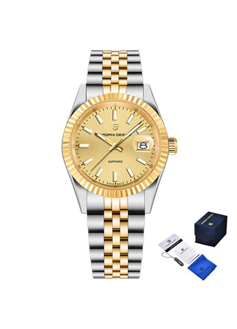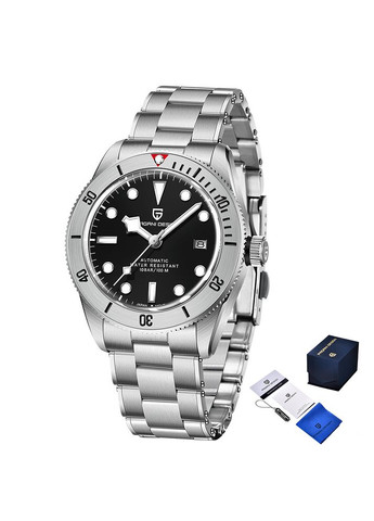 Описание часов Pagani Design PD-1791 Blue-Silver Pagani Design PD-1791 – это стильные мужские часы, которые сочетают в себе элегантность и функциональность. Имеет серебристый корпус диаметром 42 мм, изготовлен из стойкой к коррозии стали, что обеспечивает долговечность. Приятный голубой кожаный ремешок длиной 22 мм придает ему особый шарм. Часы оснащены сапфировым стеклом, которое надежно защищает стрелочный циферблат с индексами, отображая часы, минуты и секунды. Его механический механизм с автоподзаводом гарантирует точность времени. Водонепроницаемость на уровне 50 м делает эти часы отличным спутником для активного образа жизни. Благодаря современному дизайну, PD-1791 отлично подходит для casual или классического стиля, позволяющего использовать его в разных ситуациях – от деловых встреч до повседневных прогулок. Гарантия на часы составляет 12 месяцев, а их световая индикация обеспечивает удобство в использовании в темноте. Вертикальный классический дизайн часов Pagani Design PD-1791 – это отличный выбор для тех, кто ценит стиль и качество.