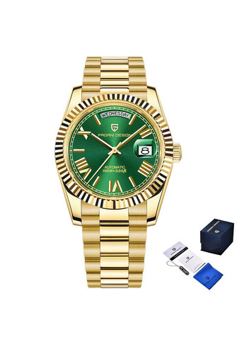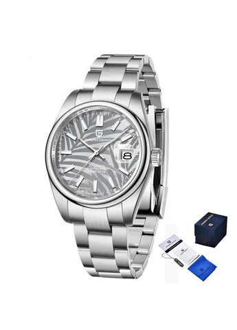 Часы Pagani Design PD-1716 Silver-White – это стильный мужской аксессуар, выполненный из нержавеющей стали, сочетающий в себе современный дизайн и классические элементы. Водонепроницаемый до 100 метров, он является надежным спутником в любых условиях. Объединенные сапфировым стеклом, данные часы обеспечивают высокую устойчивость к царапинам. Механический механизм с автоподзаводом гарантирует точность в показах времени, доступном в виде стрелочного циферблата с индикацией часов, минут, секунд и числа. Дополнительная функция календаря подчеркивает практичность данной модели. Люминесцентная подсветка обеспечивает легкость считывания в темноте. Часы имеют круглую форму корпуса, серебристый цвет, а его браслет выполнен в аналогичном стиле, что придает элегантности. Длина ремешка составляет 21 см, ширина – 20 см, вес – 143 г. Часы поставляются с гарантией 12 месяцев, изготовленные в Китае.