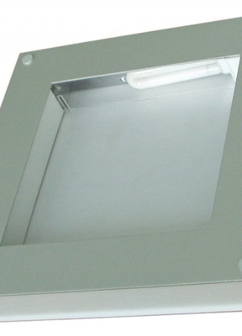 Настенно-потолочный светильник. Его металлический корпус покрыт слоем никеля. В качестве источника света используется компактная люминесцентная лампа. Свет от таких ламп не такой яркий, как свет от ламп накаливания. Но их излучающая поверхность больше, за счёт чего и компенсируется светоотдача. Свет люминесцентных ламп по своему спектру похож на дневной, что позволяет весьма чётко различать цвета. Эти лампы имеют довольно низкую рабочую температуру, обычно она та же, что и у окружающей среды. Ещё одним плюсом люминесцентных ламп является выбор оттенков, который довольно широк и зависит от сорта люминофоров, используемых в лампе. Также они позволяют экономить электроэнергию, ведь потребляют её в 4-5 раз меньше, чем аналогичные по светоотдаче лампы накаливания, да и служат люминесцентные лампы дольше: до 18 тыс. часов.