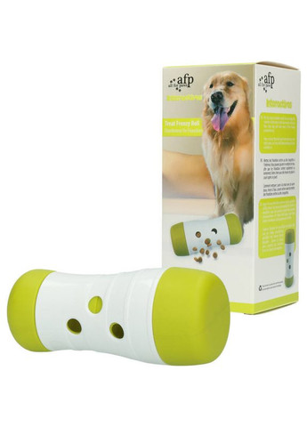 Игрушка выполнена из качественного, крепкого пластика и силикона. Эти материалы полностью безопасны для домашнего любимца и не имеют токсичного запаха, поэтому хозяин может не волноваться о здоровье своего питомца. Такая игрушка будет способствовать физическому и интеллектуальному развитию животных. Воспитаннику придется хорошо погонять за ней, пока он достанет весь корм или лакомство. Наполните тубус любимого едой животного или аппетитным лакомством и откройте отверстия, через которые будут выпадать вкусности. Игрушка имеет несколько режимов, поэтому можно облегчить или усложнить доставание пищи из нее. Животному придется толкать тубус лапами или носом, чтобы оно катилось и из специальных отверстий выпадали вкусности. Также этот девайс станет настоящей находкой для владельцев прожорливых животных. Игрушка позволит увеличить время приема пищи питомцам и предотвратить развитие ожирения у животного или других проблем с пищеварением. Преимущества: Стимулирует интеллектуальное развитие животного; Обеспечивает активное и увлекательное проведение досуга; Можно наполнять как лакомством, так и кормом; Может использоваться в качестве кормушки для медленного кормления; Выполнена из безопасных, нетоксичных материалов; Вызывает интерес у животного благодаря яркому дизайну; Симулирует животное к активным играм и тренировкам; Легко ухаживать и просто мыть. Уход : Промойте водой с использованием мягких моющих средств. Внимание: прежде чем снова положить лакомство, убедитесь, что дозатор сухой. Характеристики: Назначение: для собак, котов, кроликов Размер: 17х7х7 см Материал: пластик Цвет: белый, салатовый