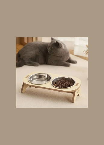 Стойка для кормления кошек и небольших собак с подъемом кормушек, кормушки под углом, с крепкими нержавеющими стальными мисками, поднята под наклоном деревянная стойка для корма и воды и для защиты шеи. Размер стойки кормушек:Ш 16см Д 31,5см Нержавеющая сталь миски, размер:13см