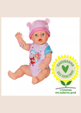 Познакомьтесь с Эммой-Единорогом – это одна из любимых героинь нового мультсериала, основанного на куклах вселенной BABY Born. В этом волшебном образе с блестящим платьем и колпачком-единорогом Эмма словно сошла со страниц сказки. Она остается любознательной, доброжелательной и активной, всегда готова помочь друзьям и вдохновить новые приключения. Эмма – положительный пример для детей, смотрящих сериал. Особенности: нажмите на мягкую грудь BABY born – и она заплачет; нажмите на мягкий животик куклы, чтобы она сходила на горшок; очень удобно и легко переодевать благодаря подвижным ручкам и ножкам; благодаря волшебной пустышке кукла может закрывать и открывать глаза в любом положении; • налейте воду в тарелочку или горшок, чтобы увидеть магию! Когда вы наливаете воду на вкладыш в тарелке, появляется милый рисунок с едой; быстрое высыхание после игр с водой! Вы можете вынуть ножку куклы, чтобы создать большее отверстие – и вода быстрее вытечет; все функции механические – батарейки не нужны; открытая eco-friendly упаковка без использования пластика – в ней больше нет пластиковых окошек, креплений и полиэтиленовых пакетов. Это означает, что упаковку проще переделать, и она меньше вредит окружающей среде; каши больше нет в комплекте, но ее всегда можно приобрести по отдельности. BABY born - с заботой о будущем детях! Функции: ест; пьет из бутылочки; плачет настоящими слезами; с Эммой можно купаться; подвижные ручки и ножки; ходит на горшок; открывает и закрывает глаза. В комплект входят: Кукла 43 см; комплект одежды; Бутылочка; Пустышка; Подгузник; Тарелка; ложка; Горшок; Браслет дружбы для девочки и куклы; Детский альбом с наклейками, инструкция. Игра с такой куклой развивает воображение, умение играть и эмоциональное восприятие у ребенка. Рекомендуется для детей от 3 -х лет. Характеристики: Развивающий – эмоциональное развитие, умение играть, воображение; Звук – нет; Питание – не нужно; Батарейки входят в комплект – нет; Возраст – 3-10; Свет – нет; Звук (укр.) – нет; Бренд – BABY born; Страна происхождения – КНР; Размер игрушки в упаковке ширина – 18; Размер игрушки в упаковке высота – 39; Размер игрушки в упаковке длина – 33,5; Ограничение по возрасту – до 36 месяцев; В комплект входит – 1 кукла, комплект одежды, тарелочка с ложкой, подгузник, пустышка, горшок, бутылочка, браслеты дружбы; Гарантия – гарантия не распространяется; Материал – комбинированные материалы: текстильные; Срок годности, мес. - неограниченный;
