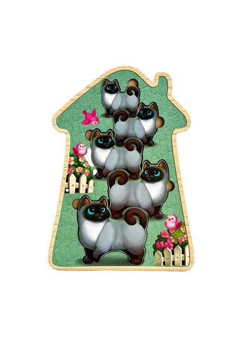 Ваши дети обожают котиков? Тогда эта игра именно для Вас: 14 милых кошек ждут встречи с Вашим малышом. В наборе вкладыш-подсказка, чтобы ребенок мог по тени искать соответствующего котика. Когда ребенок научится, то усложнить задание можно, сняв подсказку. 1. Развитие логического и понятийного мышления. 2. С помощью такого методического материала дети познают окружающий мир. 3. Развивается мелкая моторика. Доставая и вставляя определенным образом детали сортера, дети прекрасно тренируют пальчики. 4. Работает зрительная память, тренируется внимание и усидчивость.