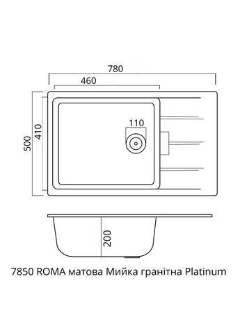 Гранитная мойка для кухни 7850 ROMA украинского бренда Platinum – это стильная, врезная, прямоугольная мойка, которая своим видом прекрасно дополнит дизайн вашей кухни. Мойка на 80% состоит из кварца и на 20% из очень жесткой акриловой смолы, благодаря чему неприхотлива в уходе, а также имеет большой запас прочности. Размеры мойки: 780х500х200 мм Размеры чаши: 460х410х200 мм Евросифон с широкой горловиной: 110 мм. Мойка имеет матовую фактуру и приятный для глаза цвет – черная, что позволяет ей легко вписаться в интерьер кухни. Мойка изготовлена в Украине из качественного немецкого сырья по технологии Solid Surface с соблюдением всех необходимых стандартов. Это обеспечивает мойке следующие преимущества: • стойкость к царапинам и механическим повреждениям; • защита от потери цвета со временем, стойкость к УФ-лучам; • способность выдерживать резкие перепады температуры: можно спокойно лить горячую воду и не беспокоиться о состоянии мойки; • правильная геометрия, способствующая легкой установке и плотному прилеганию к поверхности; • срок гарантии 7 лет В комплекте с мойкой идут все необходимые для установки крепежа. В мойке есть боковой перелив, который при заполнении чаши будет сливать излишки воды.