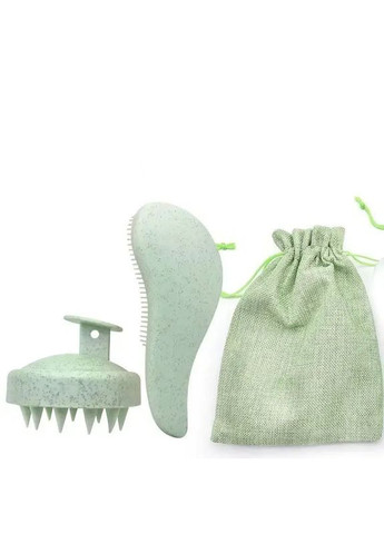 Гребешок и массажная щетка, набор для волос в мешочке, фисташковый