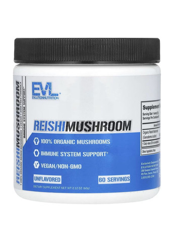 Evlution Nutrition Reishi Mushroom - активный компонент в терапии многих болезней, может использоваться с целью профилактики здоровья. Особенности: способствуют уменьшению уровня холестерина в крови; нормализуют кровяное давление; усиливают защитные функции организма. оказывает тонизирующий эффект; 100% органические грибы Веганский продукт / без ГМО Рейши применяется в качестве натуральной добавки и полноценных лекарственных средств, чтобы восстановить организм после перенесенных недугов. Рекомендации по применению В качестве пищевой добавки смешивайте 1 мерную ложку гриба рейши с любимым напитком (желательно во время еды) или в соответствии с рекомендациями врача.