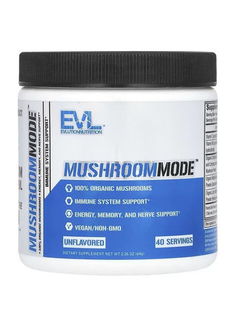 Evlution Nutrition MushroomMode - это высококачественная пищевая добавка, разработанная для поддержания всеобщего здоровья и благополучия организма с помощью экстрактов грибов. MushroomMode содержит уникальную смесь экстрактов различных видов грибов, таких как левый грив, рейши, шиитаке и другие. Эти грибы известны своими полезными свойствами, которые могут оказывать положительное воздействие на организм. Поддержка иммунной системы: Экстракты грибов, содержащихся в MushroomMode, помогают укрепить иммунную систему и повысить защитные функции. Это особенно важно для сохранения здоровья в периоды стресса или изменения климата. Адаптогенные свойства: Некоторые грибы, используемые в составе MushroomMode, обладают адаптогенными свойствами, которые помогают организму лучше справляться с различными видами стресса и приспосабливаться к изменениям. Антиоксидантная защита: Экстракты грибов являются богатыми источниками антиоксидантов, которые помогают защитить клетки организма от воздействия свободных радикалов и окислительного стресса, замедляя процессы старения и поддерживая здоровье. Поддержка энергии и жизненного тонуса: MushroomMode способствует повышению энергии и жизненного тонуса, помогая чувствовать себя бодрее и энергичнее в течение дня. Evlution Nutrition MushroomMode – это продукт, который может быть полезен для тех, кто ищет естественные способы поддержания здоровья и благополучия организма. Рекомендации по применению В качестве пищевой добавки смешивайте 1 мерную ложку Mushroommode™ с любимым напитком (желательно во время еды) или в соответствии с рекомендациями врача.