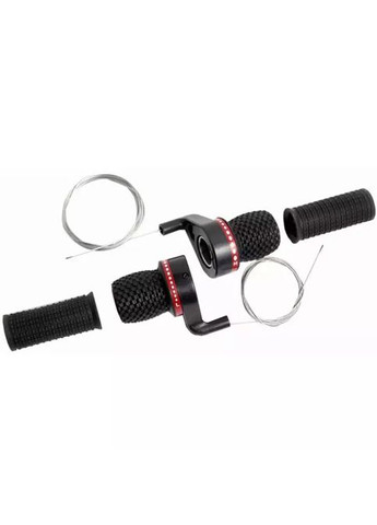 Ревошифт велосипедный с грипсами - 3 x 7 скоростей. Характеристики: Тип переключения: Ревошифт (вращающиеся ручки); Количество скоростей: 3 вперед / 7 назад (3x7); Материал: Пластик и резина; Совместимость: Подходит для большинства многоскоростных велосипедов с 3-звездочной системой спереди и 7-звездочной системой сзади; Комплектация: Левый и правый ревошифтеры; Грипсы (2 шт.); Тросы переключения передач;