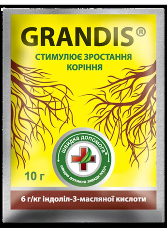 Пересадка и черенкование – важные этапы в выращивании растений, но часто они сопровождаются стрессом, медленным укоренением или даже гибелью саженцев. Как помочь растениям быстро адаптироваться и сформировать мощную корневую систему? Grandis® – это эффективный стимулятор корнеобразования, созданный на основе индолил-3-масляной кислоты – биологического вещества, активизирующего формирование корневой ткани. Препарат обеспечивает быстрое укоренение черенков, улучшает приживление рассады и ускоряет прорастание семян. Нормы внесения Нормы внесения Вид Норма расхода Способ применения Саженцы Корневую систему припудрить перед высадкой; или В зависимости от размера растения на дно подготовленного углубления высыпать 0,5-1ч. ложечки (2,5-5 г) препарата и перемешать с почвой Черенки Перемешать с почвой - затем высадить растение и пролить; или всыпать на дно подготовленного углубления 0,5 ч. ложечки (2,5 г) Grandis и перемешать с грунтом Семена В приготовленную канавку всыпать 10 г Grandis на 1 метр погонный и высеять семена. Основные свойства: Ускоряет образование корней; Улучшает приживление рассады – значительно уменьшает стресс при пересадке овощных и цветочных культур; Стимулирует развитие корневой системы – формирует мощные, здоровые корни, что способствует активному росту растений; Ускоряет прорастание семян; Содержит активаторы укоренения. Как использовать: Для саженцев корневую систему припудрить перед высадкой; и можно в зависимости от размера растения на дно подготовленного углубления высыпать 0,5-1 ч. ложечки (2,5-5 г) препарата и перемешать с почвой; Для черенков всыпать на дно подготовленного углубления 0,5 ч. ложечки (2,5 г) Grandis® и перемешать с грунтом; Для семян в приготовленную канавку всыпать 10 г Grandis на 1 метр погонный и высеять семена.