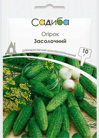 Огурец Засолочный – раннеспелый (40-45 суток) насекомоопыляемый урожайный сорт с прекрасными «засолочными» качествами для открытого грунта. Растение с длинными стеблями, на которых образуется много огурчиков одинакового размера, правильной цилиндрической формы, длиной до 12-14 см, весом до 100-150 г. Зеленцы крупнобугорчатые с белыми полосками, нежной кожурой и плотной мякотью без пустот, сладковатые на вкус, без горечи. Сорт относительно устойчив к поражению пероноспорозом, хорошо адаптирован к неблагоприятным погодным условиям, его стабильная урожайность 4,0-5,0 кг/м². Потребляют в свежем виде, маринуют, а главное – они хорошо солятся, оставаясь хрустящими, аппетитными на вид и восхитительными на вкус.