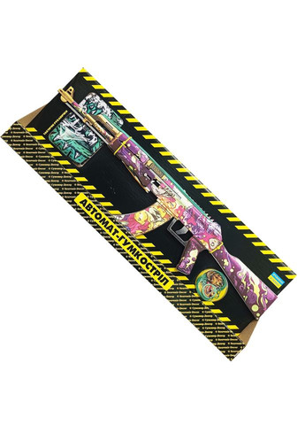 Действующая модель Автомата "АК", зарядный механизм из 10-ти патронов Модель из фанеры (готовый собранный вариант в подарочной упаковке), стреляет резинками для денег Автомат стреляет: -одиночным выстрелом -очередью В комплекте: -Резинки для стрельбы (патроны) -Брелок -Комплект наклеек Максимум позитива! Патроны продаются в ближайших Канцтоварах Характеристики: Габариты: длина: 59,5 Габариты: ширина: 5 Габариты: высота: 21 Состояние: новое Возрастная группа: От 6 лет Материал: дерево Тип: Деревянный Цвет: Разные цвета Упаковка: Демонстрационно открытая Вид: Детское оружие Возраст: С 6-ти лет Гарантия: 14 дней Пол: Для мальчиков Страна регистрации бренда: Украина Страна-производитель товара: Украина