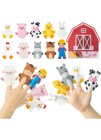 Набор «Ферма» – 11 пальчиковых игрушек с сараем Этот красочный набор станет отличным подарком для детей, любящих ролевые игры и интересующихся животными. В комплект входят 11 мягких фигурок в форме фермерских животных и фермера, а также декоративный сарай-сумка для удобного хранения и переноски. В наборе: Фермер Кролик Лошадка Поросенок Корова Ослик Гусь Курочка Утенок Ягненок Красный сарай (сумка для хранения) Особенности: Игрушки изготовлены из мягкого и безопасного материала. Легко надевают пальцы и подходят даже для маленькой детской ручки. Размер фигурок от 6 до 10 см удобен для игры и обучения. Прекрасно подходят для домашнего кукольного театра, сказочнотерапии, обучения звукам и названиям животных. Способствуют развитию речи, воображения и коммуникативных навыков ребенка. Это не просто игрушки, а увлекательный способ сделать игры и обучение ребенка еще интереснее.