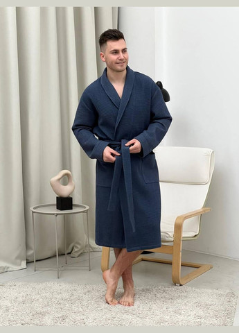 Халат из вафельной ткани натуральный Халат мужской на запах удобный Банные халаты мягкий Мужской халат, практичный Этот мужской халат изготовлен из натурального 100% турецкого хлопка, благодаря чему он дышит, мягко прилегает к телу и легко впитывает влагу. Его вафельная структура и плотность 280 г/м2 обеспечивают удобство при использовании после душа, в бане или сауне. Унисекс-дизайн позволяет носить его как мужчинам, так и женщинам, а минималистичный стиль подойдет поклонникам сдержанной эстетики. Он станет незаменимым элементом домашнего гардероба – практичным, износостойким и стильным. Преимущества: Натуральный состав — 100% хлопок, без синтетики Воздухопроницаемость — кожа дышит, без перегрева Турецкая ткань — мягкая, прочная и износостойкая Универсальный крой — комфорт для всех Многофункциональность — для дома, бани и отдыха Эстетика минимализма — под любой Не использовать хлорсодержащие средства. Лучше сушить на воздухе, но допустимую и машинную сушку в щадящем режиме. Гладить по желанию. Характеристика: Унисекс вафельный халат 100% хлопок Комфорт, который хочется носить. Плотность: 280 г/м2 Ткань: Турция Размеры: M-L, XL-XXL (46-52) Длина: 125 см Подходит для дома, бани, сауны, бассейна Характеристики товара: Вид - Банные Вид ткани - Хлопок Длина - Удлиненная Количество предметов, удлиненная Количество предметов, капюшоном;С поясом;С карманами;С запахом Принт XL-XXL Сезон - Всесезонная модель Состав;RU - 100% хлопок Состав;UA - 100% хлопок Страна-производитель товара - Турция Цвет - Синий - - - -