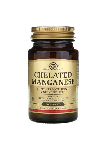 Хелатный марганец Solgar (Chelated Manganese) представляет собой пищевую добавку, состоящую из 100 таблеток марганца в хелатной форме. "Хелатный" означает, что марганец связан с аминокислотами, что улучшает его усвоение и абсорбцию организмом. Благодаря этому, хелатный марганец обладает более высокой биодоступностью по сравнению с другими формами марганца. Марганец играет важную роль во многих жизненно важных функциях организма, включая поддержание здоровья костей, формирование соединительной ткани, а также защиту клеток от окислительного стресса. Он является кофактором во многих ферментативных системах, необходимых для нормального функционирования организма. Недостаток марганца в организме может проявляться различными симптомами. Он может привести к ослаблению костей, снижению иммунитета, увеличению утомляемости, ухудшению симптомов ПМС, нарушениям в репродуктивной функции и бесплодию, изменениям в усвоении глюкозы и аппетите, а также гормональному дисбалансу. В редких случаях дефицит марганца может вызвать повышение кровяного давления, проблемы с памятью и чрезмерное потоотделение. Марганец важен для нормального энергообмена, что делает его необходимым элементом для поддержания общего уровня энергии и жизненной активности. Эта добавка особенно рекомендуется для людей, чей рацион питания не содержит достаточного количества марганца, например, при диетах с ограниченным употреблением продуктов, богатых марганцем, таких как пророщенные зерна, бобовые, орехи и семена. Она также может быть полезной для людей, занимающихся спортом или испытывающих повышенные физические нагрузки, поскольку марганец способствует поддержанию здоровья костей и соединительных тканей. Продукт подходит для веганов, вегетарианцев и соответствует кошерным стандартам. Добавка Хелатный марганец от Solgar может стать отличным выбором для обогащения вашего рациона этим важным микроэлементом. Эта пищевая добавка обеспечивает легко усваиваемую форму марганца, которая поддерживает различные функции вашего организма, включая здоровье костей и защиту от окислительного стресса. Простота включения ее в ежедневный рацион делает этот продукт удобным и доступным способом поддерживать здоровье каждый день, помогая вам чувствовать себя лучше и жить активной жизнью. Рекомендации по применению В качестве пищевой добавки для взрослых принимайте по одной (1) таблетке в день, желательно во время еды или по назначению врача. Состав Размер порции: 1 таблетка Количество в 1 порции % от суточной нормы Марганец Марганец (в форме хелатного аминокислотного глицината марганца†) 8 мг 348 % DV — суточная норма Дополнительные ингредиенты: дикальция фосфат, микрокристаллическая целлюлоза, растительная клетчатка, растительный стеарат магния. Не содержит: глютена, пшеницы, молочных продуктов, сои, дрожжей, сахара, натрия, искусственных ароматизаторов, подсластителей, консервантов и красителей. Предупреждение Если вы беременны, кормите грудью, принимаете какие-либо лекарства или страдаете каким-либо заболеванием, то перед приемом пищевых добавок следует проконсультироваться с лечащим врачом. При возникновении каких-либо побочных реакций прекратите использование и проконсультируйтесь с медицинским работником. Хранить вне досягаемости детей. Хранить при комнатной темпер