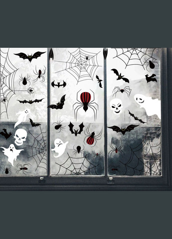 Хэллоуин наклейки. Цвет: черно-белый. Размер: (картина состоит из 4-х стикеров размерами 29*37см). Материал: силикон.