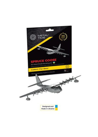 Сконструированный во время военных ограничений на использование алюминия и из соображений веса, самолет получил от критиков прозвище "Еловый гусь", несмотря на то, что был изготовлен преимущественно из березы по технологии Duramold. "Геркулес" считался самой большой летающей лодкой из когда-либо построенных, имея самый широкий размах крыльев среди всех самолетов, пока 13 апреля 2019 года не поднялся в воздух стратоплан Scaled Composites Stratolaunch. В настоящее время Spruce Goose хорошо сохранился и выставлен на всеобщее обозрение в Вечнозеленом музее авиации и космонавтики в Мак-Миннвилле, штат Орегон, США, после того как с 1980 по 1992 год был выставлен в Лонг-Бич, штат Калифорния. Небесный Геркулес является свидетельством инноваций и инженерного мастерства. Вдохновленная "Еловой гуськой", наша модель воспроизводит крупнейшую летающую лодку из когда-либо построенных, с тщательным вниманием к деталям. Несмотря на историческое "несчастье" оригинального самолета, мы оживили его, бросив вызов истории и представив механическое чудо, покоряющее небо. Ключевые особенности: - Реалистическое движение: Небесный Геркулес, приводимый в движение механизмом у основания, может похвастаться подвижными пропеллерами, которые можно запускать одновременно. - Подробный обзор: Модель легко снимается с основания, что позволяет энтузиастам внимательно изучить его со всех сторон. - Захватывающая сборка: В набор входят детали-вставки, спираль, шестерни, плоскогубцы, напильник, перчатки, полировальная ткань и инструкция по захватывающей сборке. Metal Time представляет Небесного Геркулеса как дань памяти выдающемуся Гуменнику. Модель изготовлена из экологически чистой нержавеющей стали, демонстрирует сложную конструкцию, обеспечивающую надежность внешнего вида и работу всех шести двигателей. Дополнительные характеристики: - Заводимый пружинный механизм: Самолет стоит на подставке с пружинным механизмом, который приводит в движение винты на турбинах, обеспечивая реалистическое касание. - Универсальный дисплей: Самолет можно отделить от подставки, позволяющей вручную вращать винты, имитируя полет. Небесный Геркулес бросает вызов энтузиастам технического творчества своей сложной конструкцией и множеством деталей. Хотя сборка этой модели требует сосредоточенности и времени, результат оправдывает усилия. Идеально подходит для: - семьи, группы или тематические клубы, которые ищут совместную деятельность. - энтузиастов авиации, механизмов и истории. - коллекционеров сборных моделей. Экологически чистые детали из нержавеющей стали устраняют риск порезов при сборке. Точная резка обеспечивает беспроблемное сочленение. Плоская, экологичная упаковка для удобного хранения. Каждая покупка включает в себя клубный значок Metal Time, открытку с благодарностью и уникальный номер модели. Небесный Геркулес – это не просто модель, это путешествие через историю авиации. Купите свою модель сегодня и сделайте свой вклад в возрождение украинской авиации. "Небесный Геркулес" состоит из мелких деталей, которые при определенных условиях могут быть опасны для детей младше 14 лет. Составление модели детьми должно происходить под наблюдением родителей. Конструктор не содержит клея, нет необходимости резать металл. Все детали разъединяются и соединяются легким нажатием пальцев, что исключает в