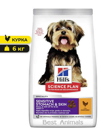 Сухой корм премиум-класса специально разработан для взрослых собак мелких пород с чувствительным пищеварением и проблемами с кожей. Благодаря легко усвояемым ингредиентам и сбалансированной формуле корм способствует хорошему пищеварению, нормализации стула, а также улучшает состояние кожи и делает шерсть блестящей. Особенности: Курица как основной источник белка. Легко усваиваемые ингредиенты для чувствительного желудка. Омега-3 и омега-6 жирные кислоты для здоровья кожи и шерсти. Пребиотические волокна для поддержания микрофлоры кишечного тракта. Маленькие гранулы удобны для собак до 10 кг. Достоинства: Поддерживает здоровое пищеварение. Улучшает состояние кожи и блеск шерсти. Снижает риск расстройств у собак с чувствительным желудком. Состав (основные ингредиенты): Кукурузная мука, дегидратированное куриное мясо, рис, жиры животного происхождения, сушеный свекольный жом, льняное семя, рыбий жир, пребиотики, минералы, витамины, аминокислоты, антиоксиданты. Аналитические компоненты: Белок – 20% Жир – 12% Клетчатка – 2,5% Зола – 5,5% Омега-3 и омега-6 жирные кислоты