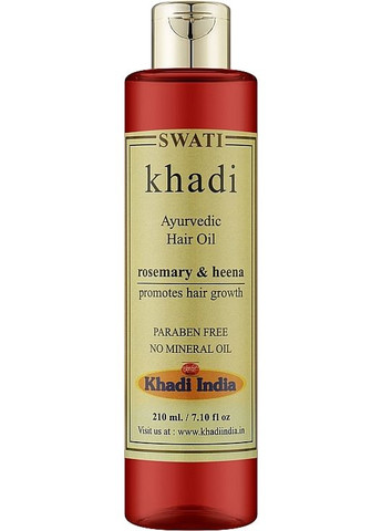 Khadi Swati Аюрведическое Натуральное Масло Для Волос - Розмарин и Хна стимулируют волосяные фолликулы, вызывая тем самым рост новых волос, укрепляет волосы, предотвращает выпадение, утончение волос при регулярном применении, уменьшает облысение. Khadi Swati Ayurvedic Hair Oil Rosemarry & Henna – масло, которое необходимо иметь в любом бьюте-арсенале. Продукт полностью натуральный, многофункциональный и универсальный. Он подходит для всех типов кожи, обеспечивает бережный, но интенсивный уход и помогает решать разные проблемы. Включите его в свою программу минимум, и превосходное преобразование обеспечено как по волшебству! Особенности аюрведического масла для волос «Розмарин и хна» Khadi Swati Ayurvedic Hair Oil Rosemarry & Henna: - не содержит парабенов и других распространенных добавок; арники, кокосовым, кунжутным, оливковым и подсолнечным маслом; - насыщенное, но очень легкое и быстро впитывается; - нежно обволакивает пряди и совершенно не отягощает; - создает тончайшую защитную пленку; - придает объем, гладкость и блеск; их выпадению и способствует росту.